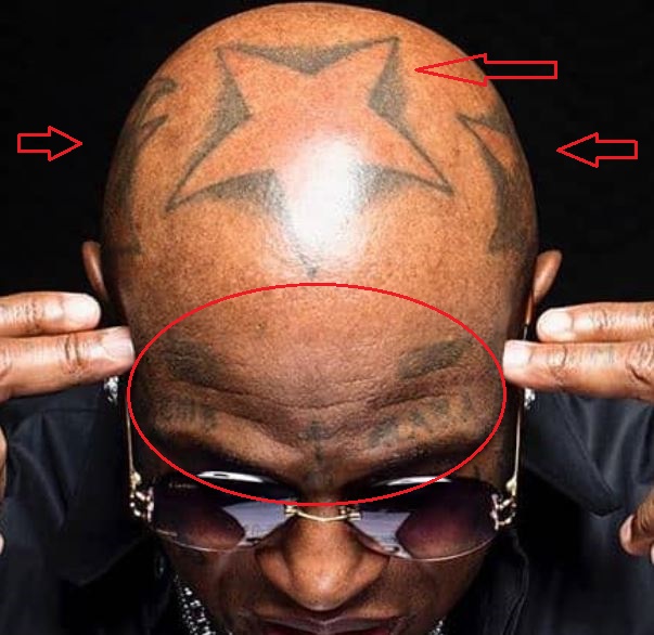 Tatouage: Il y a des tatouages de cinq grandes étoiles entouré d’un fondu sur la tête de Birdman. Ceux sur les côtés sont de couleur rouge tandis que celui du milieu est creux.