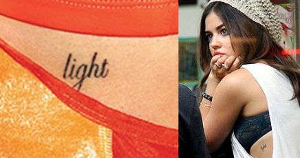 ルーシー・ヘイルは、左側に筆記体で「光」のインクを塗っています。彼女は2012年にロサンゼルスのシャムロッククラブでウー博士によってこのインクをもらいました。彼女の名前ルーシーはラテン語の「光のように」を意味するルシウスに由来しているため、このタトゥーは彼女にとって特別なものです。.