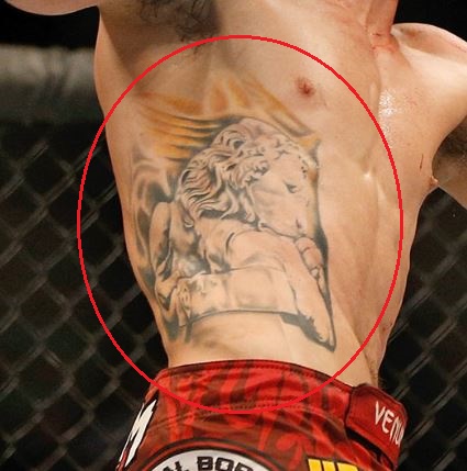 入れ墨: コンディットの体の右側には、ライオンの彫刻の大きなタトゥーがあります.