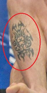 入れ墨: 彼の右下腿の前面には、その上に入れ墨された部族のデザインが含まれています.