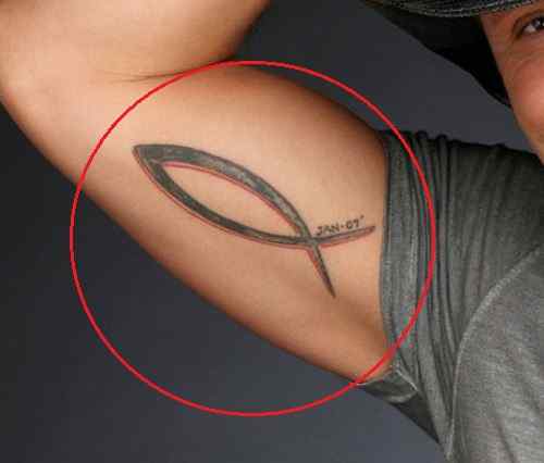 意味: 入れ墨は歌手の宗教的な見解を表しています。イクシスのタトゥーのデザインは、イエスフィッシュのタトゥーとしても知られており、キリスト教に対する持ち主の強い信仰を表しています。.