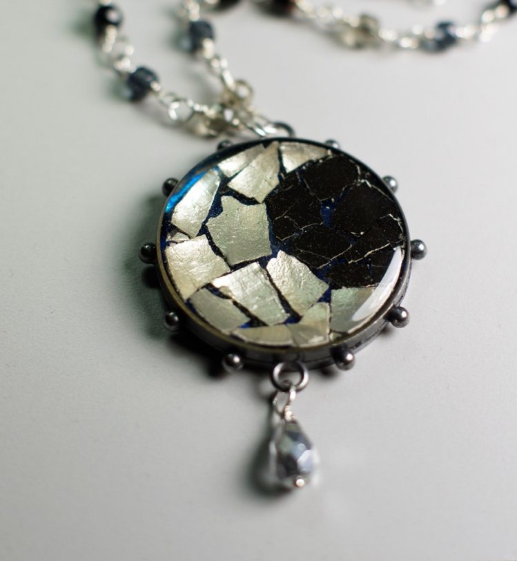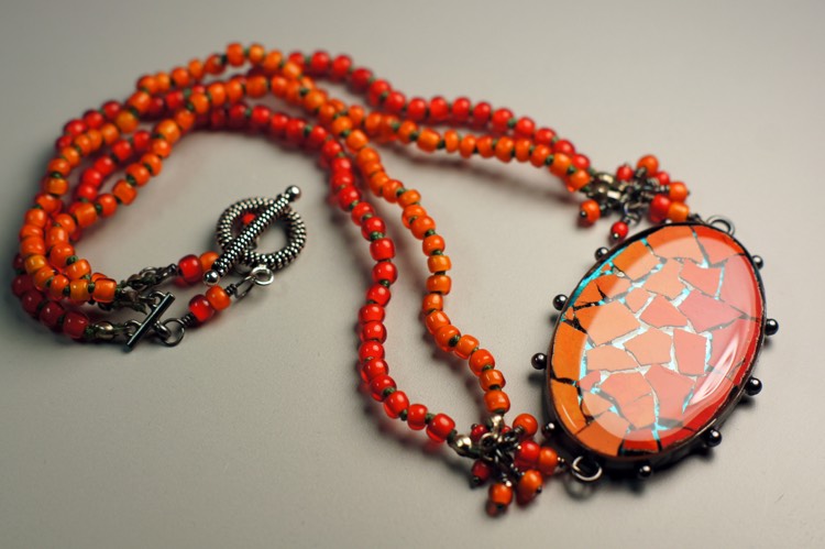 Mozaicul cu coajă de ou este, de asemenea, utilizat în proiectarea bijuteriilor. Ideile de bijuterii DIY fac ca inimile multor pasionați să bată mai repede și să fie ușor de imitat. Bucățile de coajă de ou vopsite pot fi lipite sub un strat de rășină epoxidică, lipici 3D sau pe o matriță din lut polimeric.