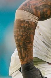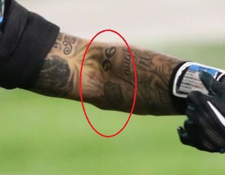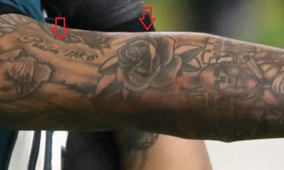 Sens: Le tatouage représente la croyance religieuse du joueur, c’est-à-dire le christianisme, en plus du fait qu’il est un fervent croyant de Jésus-Christ et de ses bénédictions..