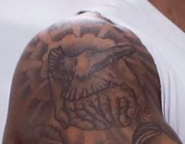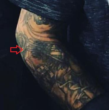 Tatouage: Il y a un autre tatouage qui recouvre la majeure partie de son bras gauche qui contient des nuages ainsi qu’une citation tatouée en dessous..