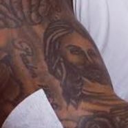 Tatouage: Il y a un tatouage du visage de Jésus-Christ sur son bras droit.