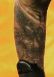 Tatouage: Il y a aussi un ange tatoué sur la face interne de son avant-bras droit avec une croix tatouée au-dessus de l’ange. L’ange s’agenouille et prie.