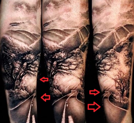 Tatouage: Le côté intérieur de son avant-bras gauche contient un tatouage représentant une route avec des arbres de chaque côté et des chaînes de montagnes que l’on peut voir au loin. Il y a aussi des nuages tatoués au dessus des montagnes.