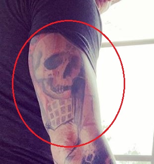 Tatouage: Il y a un tatouage d’un crâne sur le côté de son bras supérieur droit avec un bâtiment tatoué derrière lui.