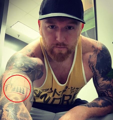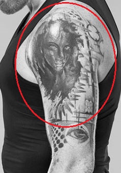 Sens: Le portrait à son bras est celui de sa femme, Stéphanie Slater, qu’il adore beaucoup. Il a obtenu ce tatouage en partie pour couvrir l’ancien tatouage tribal qu’il avait l’habitude d’avoir.