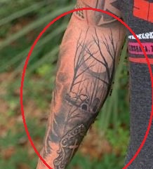 Tatouage: Il y a un tatouage du paysage d’un petit lac avec des arbres et la lune tatouée sur le côté intérieur de son avant-bras droit. Il y a aussi un bouclier tatoué près de son poignet avec une croix dessus.