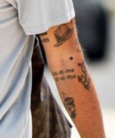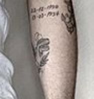 Tatouage: Il y a deux dates tatouées sur la face interne de son coude gauche. Les dates sont “12-12-1950” et “23-10-1954“