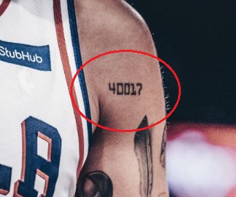 Tatouage: L’épaule gauche du joueur porte le numéro « 40017 » tatoué dessus.