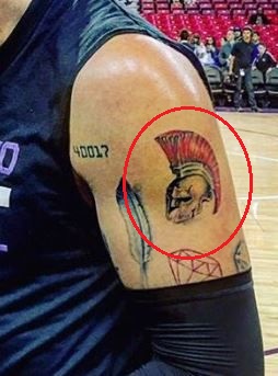 Tatouage: Il y a un tatouage du casque d’un gladiateur sur son bras gauche.