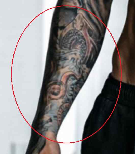 Sens: La conception géométrique est connue sous le nom de fleur de vie. C’est une forme géométrique sacrée qui est censée représenter le cycle de la création. Il décrit comment toute la vie provient d’une source singulière représentée par le motif. Il a un autre tatouage géométrique sur son bras gauche.