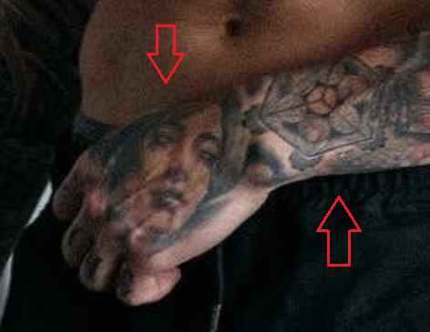 Tatouage: Il y a un tatouage du visage d’un bébé sur sa main droite.