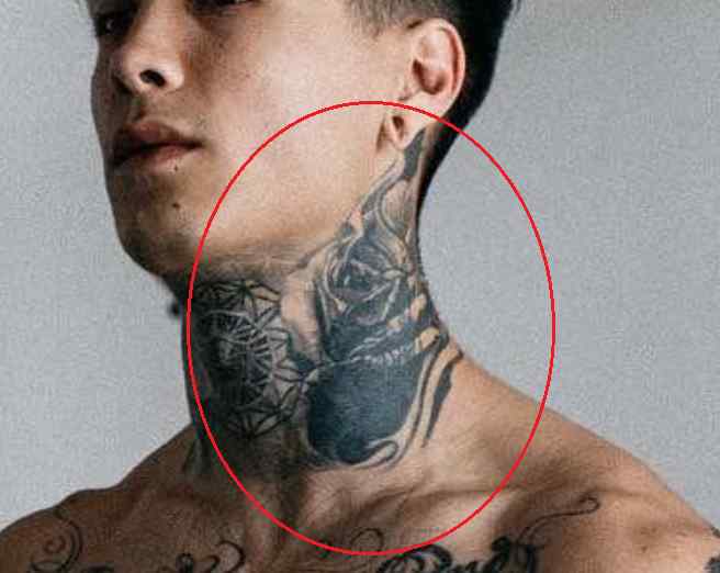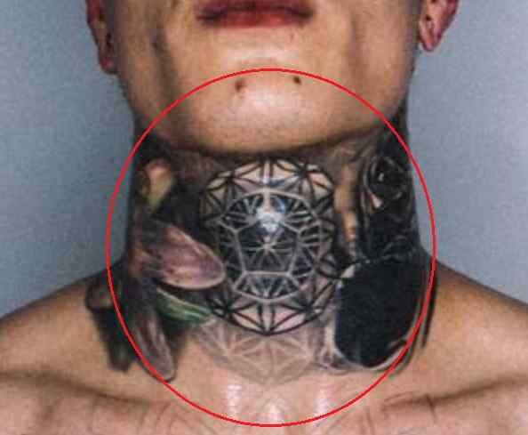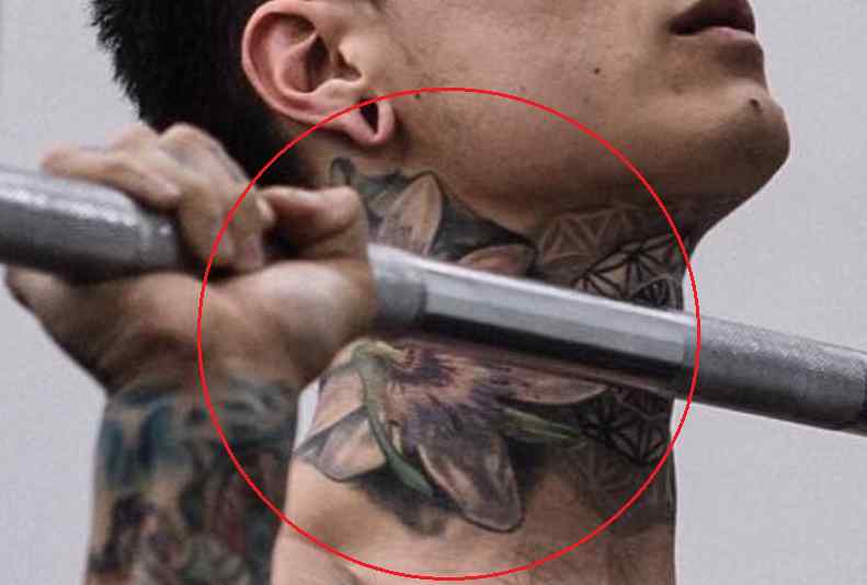 Tatouage: Il y a un dessin géométrique tatoué sur la gorge de l’athlète.