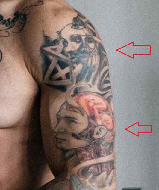 Tatouage: L’intérieur de son avant-bras gauche a un tatouage de le visage d’un vieil homme dessus. Il y a aussi un portrait du visage d’une petite fille à l’intérieur de son poignet gauche.