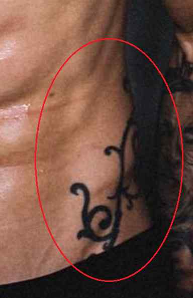 Tatouage: Il y a un autre dessin sombre tatoué sur le côté gauche de son cou.