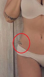 Tatouage : Le côté gauche de sa taille contient une autre ligne française tatouée qui longe sa taille et atteint son dos.