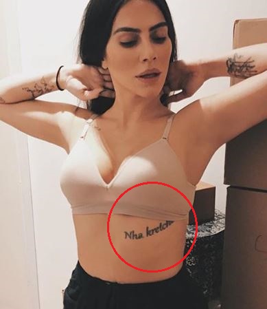 Tatouage: Le ventre de l’actrice, juste en dessous de son sein gauche, contient les mots “Nha kretcheu” tatoués dessus.