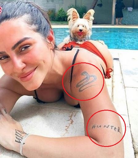 Tatouage: Le bras gauche de l’actrice, juste au-dessus de son coude, contient le mot “HUNTER” tatoué dessus. L’épaule gauche de Cleo contient un tatouage de serpent.
