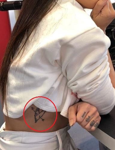 Signification : La flèche qui transperce le cœur est le symbole d’être blessé par l’amour romantique. Cleo s’est fait tatouer quand elle s’est séparée de son ex-petit ami.