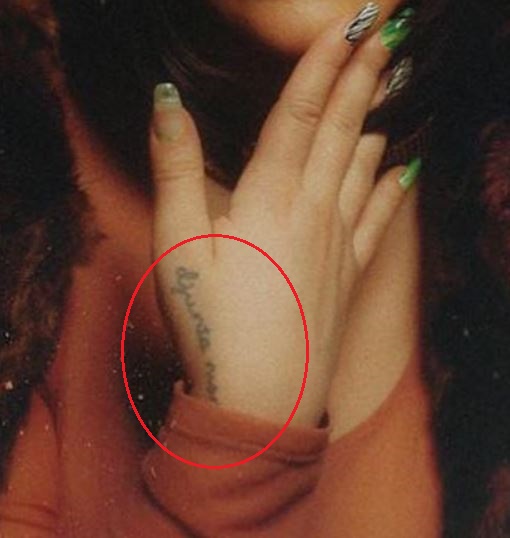 Tatouage: La main droite de l’actrice, juste le long de son pouce contient un tatouage d’une phrase difficile à distinguer.