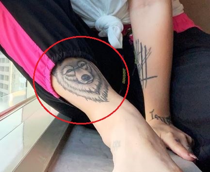 Tatouage : Le devant de sa jambe droite contient un grand tatouage du visage d’un loup tatoué dessus.