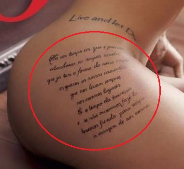 Tatouage: Le côté droit de la hanche de Cleo avait un tatouage temporaire d’un poème qui, selon elle, était l’un des textes apocryphes de Fernando Pessoa. Elle l’a tellement aimé qu’elle a décidé de se le faire tatouer pour le moment.