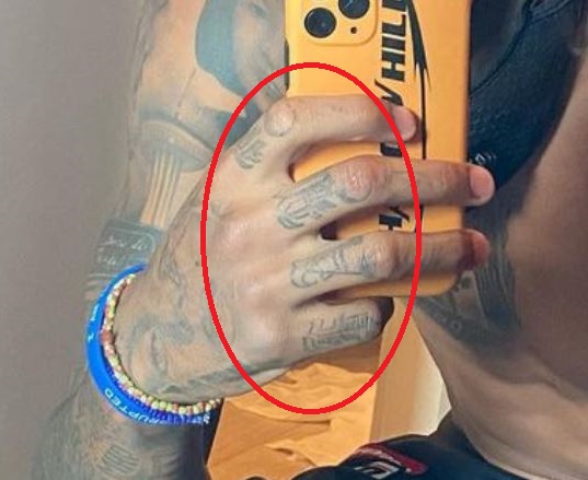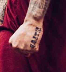 Tatouage: Le côté de sa main gauche a le mot “FOI” tatoué dessus.