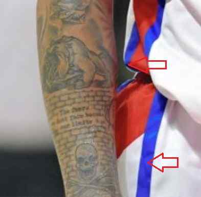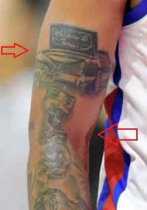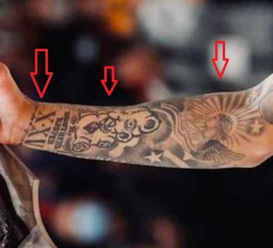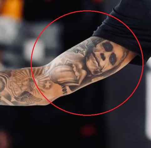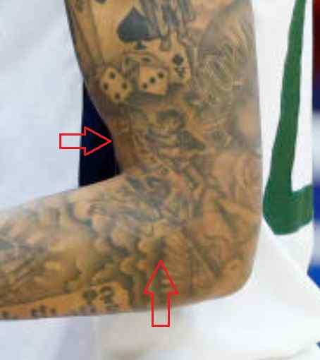 Tatouage: Le bras supérieur droit du joueur a également un tatouage d’une voiture avec des bâtiments derrière elle. Il y a aussi deux crânes tatoués près de son coude droit.