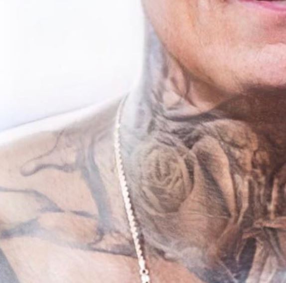 Sens: Le tatouage est un tatouage hommage à Heath Ledger qui est considéré comme le meilleur Joker de la filmographie.