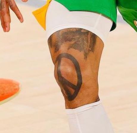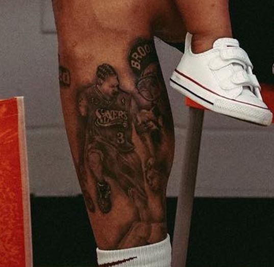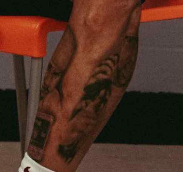 Tatouage: Le bas de la jambe droite du joueur a quelques portraits de différents joueurs de la NBA tatoués dessus.