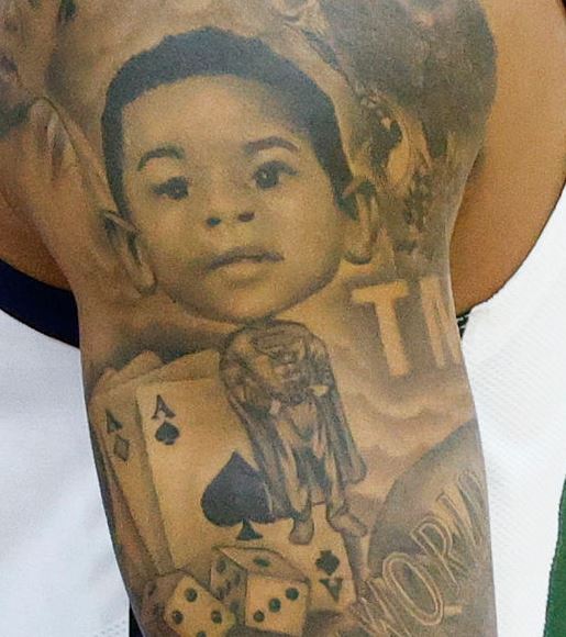 Tatouage: Le biceps droit du joueur a un tatouage du visage du Joker de Heath Ledger dessus. Il y a aussi un tatouage d’une bouche ouverte avec sa langue sous le visage du Joker.