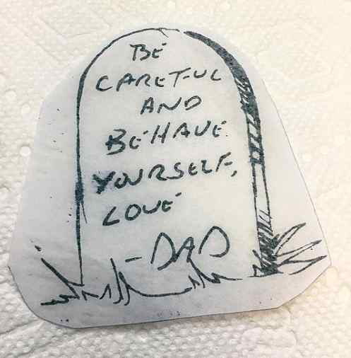 Sens: Le tatouage est un tatouage hommage à son père. Le tatouage de pierre tombale représente la mort d’un être cher et la citation dessus est quelque chose que son père lui disait.