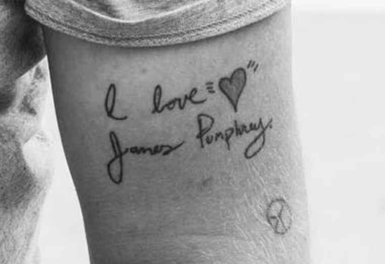 Tatouage: Le haut du bras gauche de l’acteur a un tatouage des mots “I LOVE JAMES PUMPHREY” avec un petit cœur tatoué dessus. Il y a aussi un petit symbole de paix tatoué sur son bras, en dessous des mots.