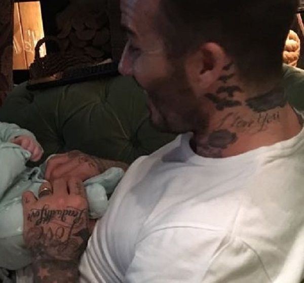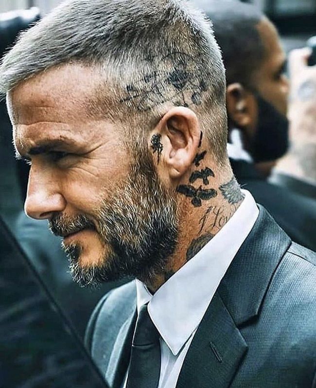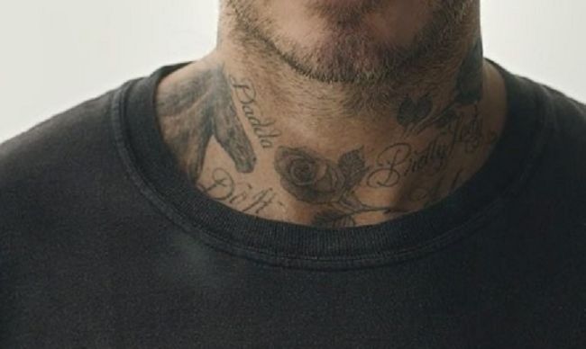 Sens: Ce n’est pas la première fois que David se fait tatouer pour son adorable épouse, Victoria, et ses beaux enfants. Ce tatouage est encré sur le côté gauche de son cou, juste à côté du tatouage rose.