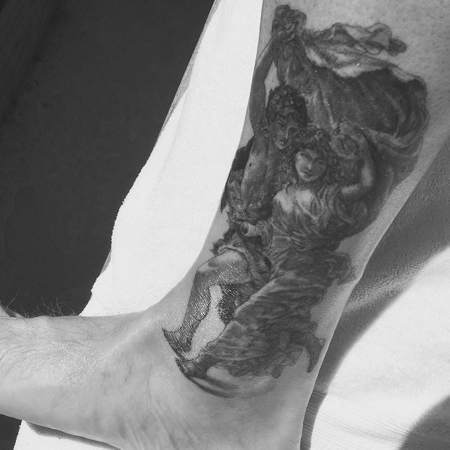 Tatouage: Tatouage ‘Cupidon et Psyché’ sur son bras gauche.