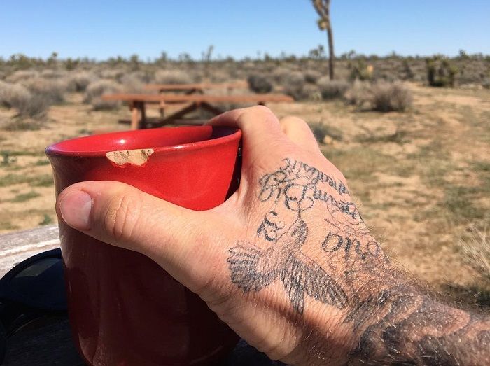 Tatouage: Tatouage « Love and Swallow » sur sa main gauche.