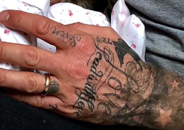 Sens: David s’est fait tatouer en octobre 2015, un dessin de sa fille Harper. Le tatouage est encré à l’intérieur de la main droite de Beckham et présente une image d’une petite fille avec un bâton, des bras et des jambes. Le 29 octobre 2015, David a mis en ligne la photo de ce tatouage sur son compte Instagram, avec la légende,
