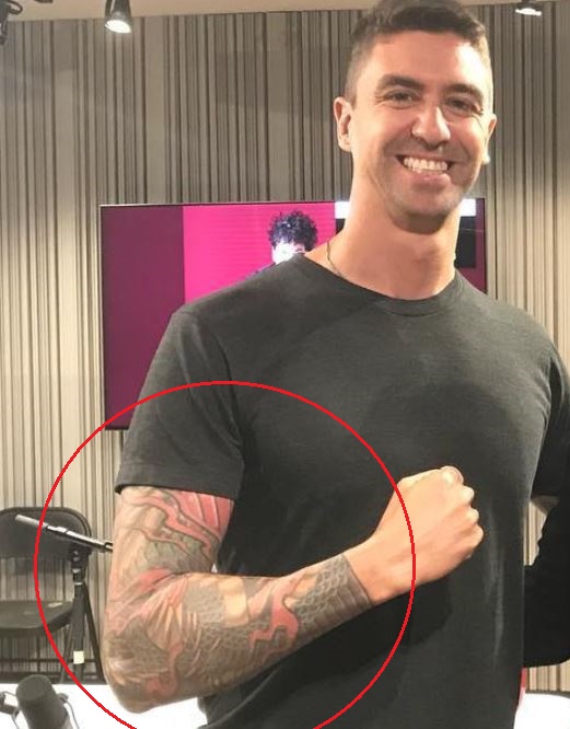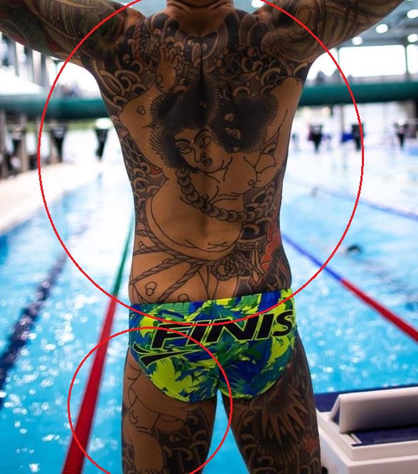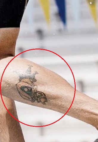 Tatouage: Le bras droit de l’olympien est recouvert d’un tatouage d’écailles comme celle d’un poisson ainsi que d’algues et de plantes rouges qui s’étendent et couvrent son bras à différents endroits. La partie supérieure de son bras droit et son épaule sont également couvertes de plantes et d’écailles rouges et vertes.