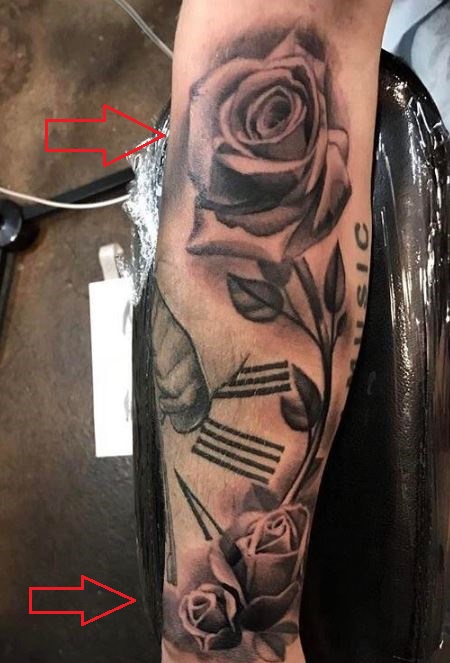 Tatouage: La partie supérieure de son avant-bras droit, autour de son tatouage, contient quelques fleurs roses tatouées dessus. Les roses complètent son tatouage de conception.