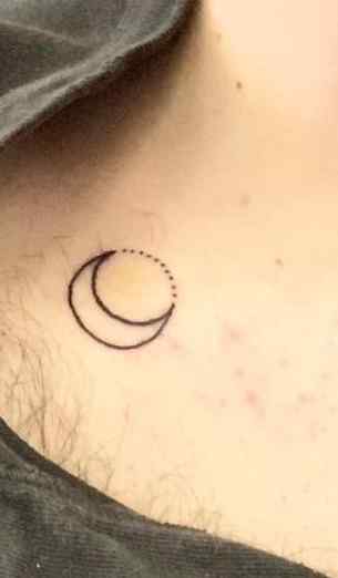 Tatuagem: Há uma tatuagem de uma lua crescente junto com uma linha pontilhada para representar uma lua cheia no lado direito de seu peito.