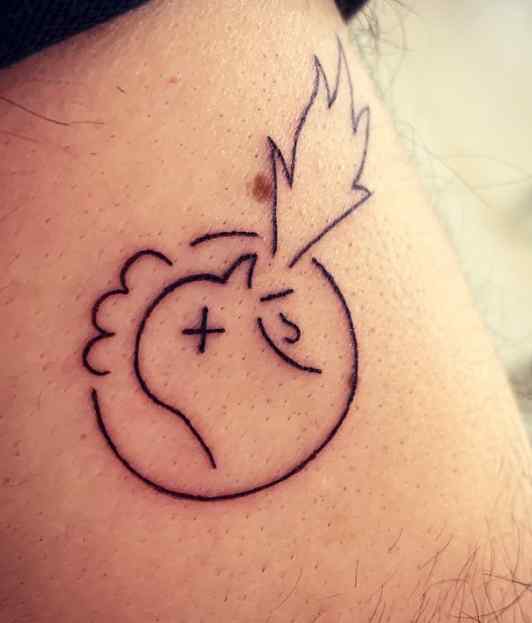Significado: O desenho da tatuagem vem da cultura chinesa e é conhecido como Basan (frango cuspidor de fogo). Ele postou a tatuagem em seu Instagram com a legenda: “Nós o batizamos de“ Drew ”- obrigado @chrisjtattoo”