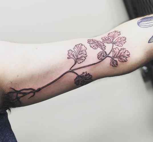 Significado: A tatuagem não é realmente um desenho floral, mas um coentro. Ele começou a crescer na axila, pois não gosta de usá-lo. Ele postou a tatuagem em seu Instagram dizendo: “Obrigado @elemags @ soho.ink pela nova folhagem doce! Sim, isso é coentro. Sim, está crescendo na minha axila. Sim, esses são meus sentimentos em relação ao coentro. ”