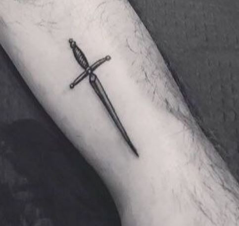 Tatuagem: O lado de seu pulso direito tem uma espada tatuada nele.