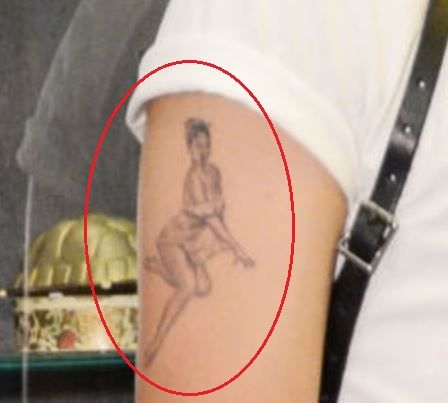 Tatuagem: O braço direito do rapper tem uma tatuagem de uma garota pin-up.