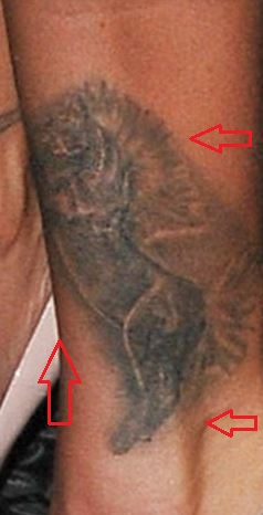 Tatuagem: O lado esquerdo da perna esquerda, logo acima do tornozelo, contém a tatuagem de um pônei.