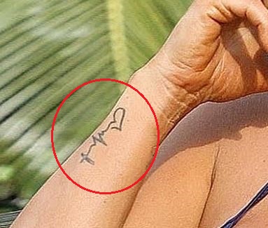 Tatuagem: O lado de seu pulso direito contém uma tatuagem de um coração junto com um batimento cardíaco.