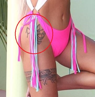 Tatuagem: Como pode ser visto no vídeo acima, que ela postou em seu Instagram, a coxa direita da sensação da mídia contém a tatuagem de uma liga.